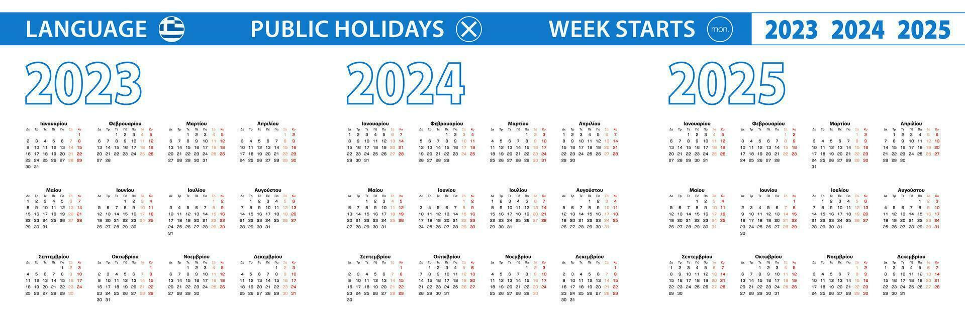 Source : www.alamy.comSimple calendar template in Greek for 2023, 2024, 2025 years. Week