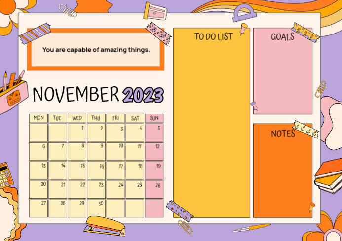 Source : www.jetpens.comIllustrated Retro School Calendar November 23 Template | PosterMyWall